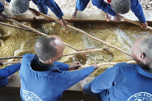 Küpsed kohvikirsid korjatakse ja ostetakse kokku. Pärast eelsorteerimist eemaldatakse viljaliha kohvikirssidelt kohaliku “Agard” viljalihaldusmasinaga, seejärel tehakse tiheduse järgi sorteerimine ujutamise teel. Seejärel kääritatakse kohvi suurtes betoonmahutites 48–72 tundi, olenevalt ilmast. Pärast kääritamist pestakse kohv kanalites ning viiakse seejärel kõrgendatud kuivatusvooditele kuivama; samal ajal sorteeritakse käsitsi välja defektid. Pärast niiskuse kontrolli ja täiendavat defektide sorteerimist hoitakse kohvi kohapeal pärgamendikihis (parchment) ning seejärel transporditakse Addis Abebasse.